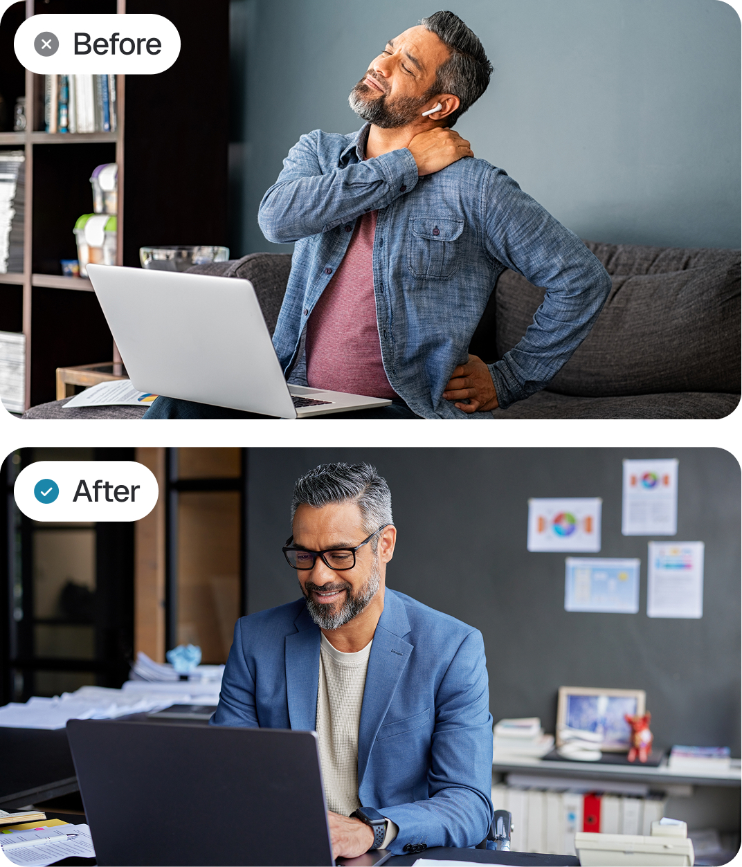 Your Personal Spine & Posture Blueprint thorough review of your initial visit findings and X-rays/MRI (if needed). Uncover how hidden imbalances in posture, body mechanics, core stability, and work/lifestyle habits are silently driving your pain and dysfunction.